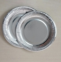 Тарелка бумажная круглая, 18 см, ламинированная Серебро, 100 шт/уп